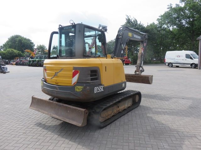 Avec une **profondeur de dragage de 4,05 m** , une **portée horizontale de 5,87 m** et une **force d’arrachement de 28,44 kN** , la EC55 excelle en performance sur chantier. Elle peut être équipée de godets allant de **0,080 à 0,235 m³** (largeur standard 0,6 m), assurant adaptabilité selon les besoins du terrain.