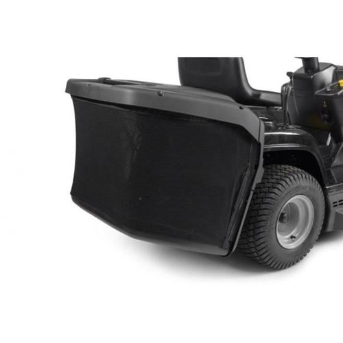 POLYVALENT : Ce tracteur tondeuse propose une éjection arrière et un kit de mulching, permettant des sessions de travail prolongées grâce à un sac à herbe d’une capacité de 200 litres. L’engagement des lames est facile grâce à l’embrayage de prise de force électromagnétique.